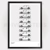 Ferrari 'BIG 6' Supercars Evolution Generations Poster 288GTO, F40, F50, Enzo, Laferrari, F80