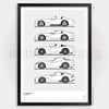 Ferrari 'BIG 6' Supercars Evolution Generations Poster 288GTO, F40, F50, Enzo, Laferrari, F80