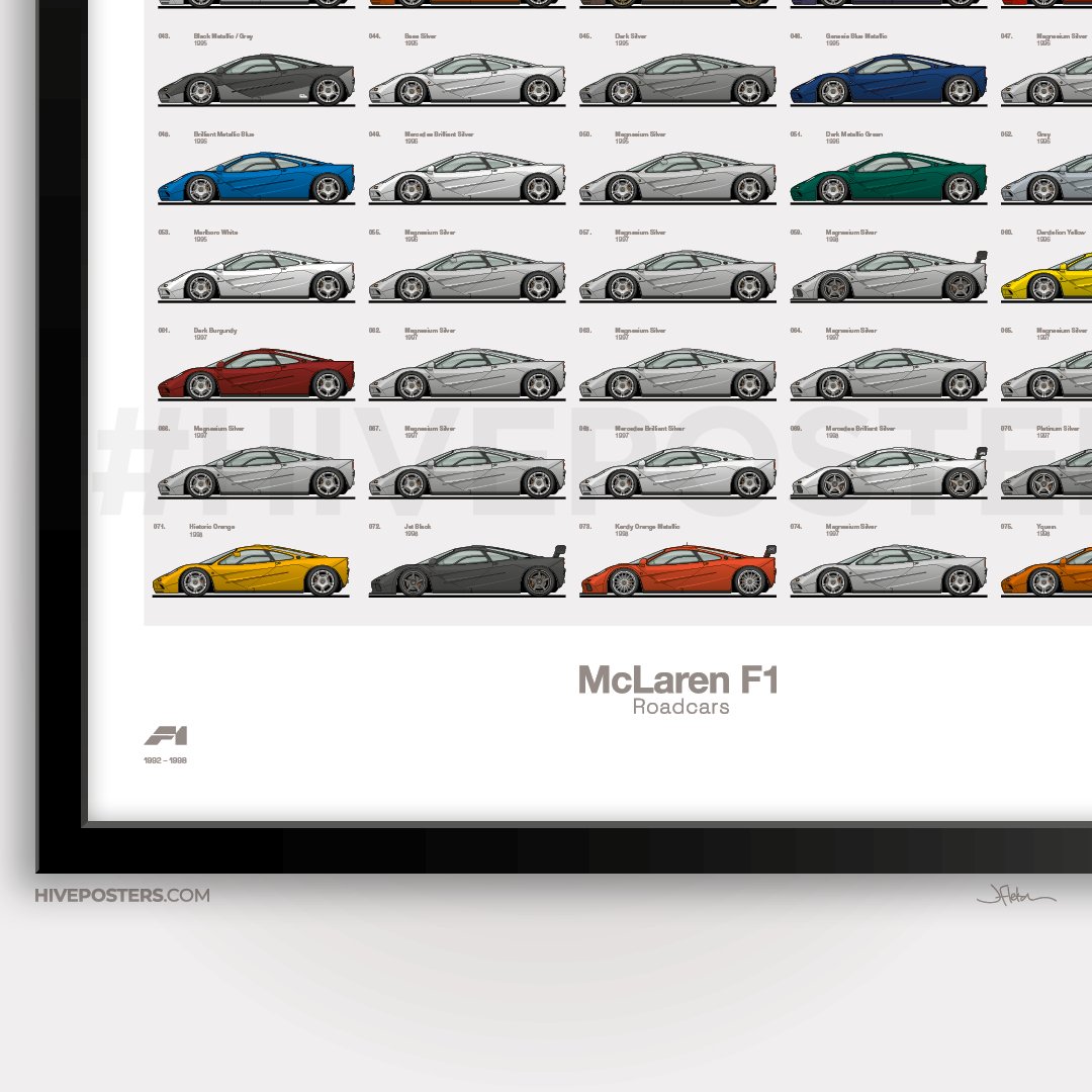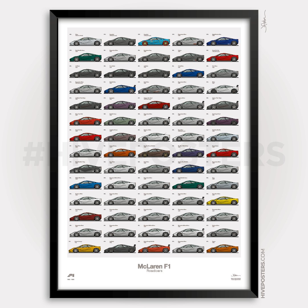 The definitive McLaren F1 poster, featuring EVERY Roadcar and Prototype.